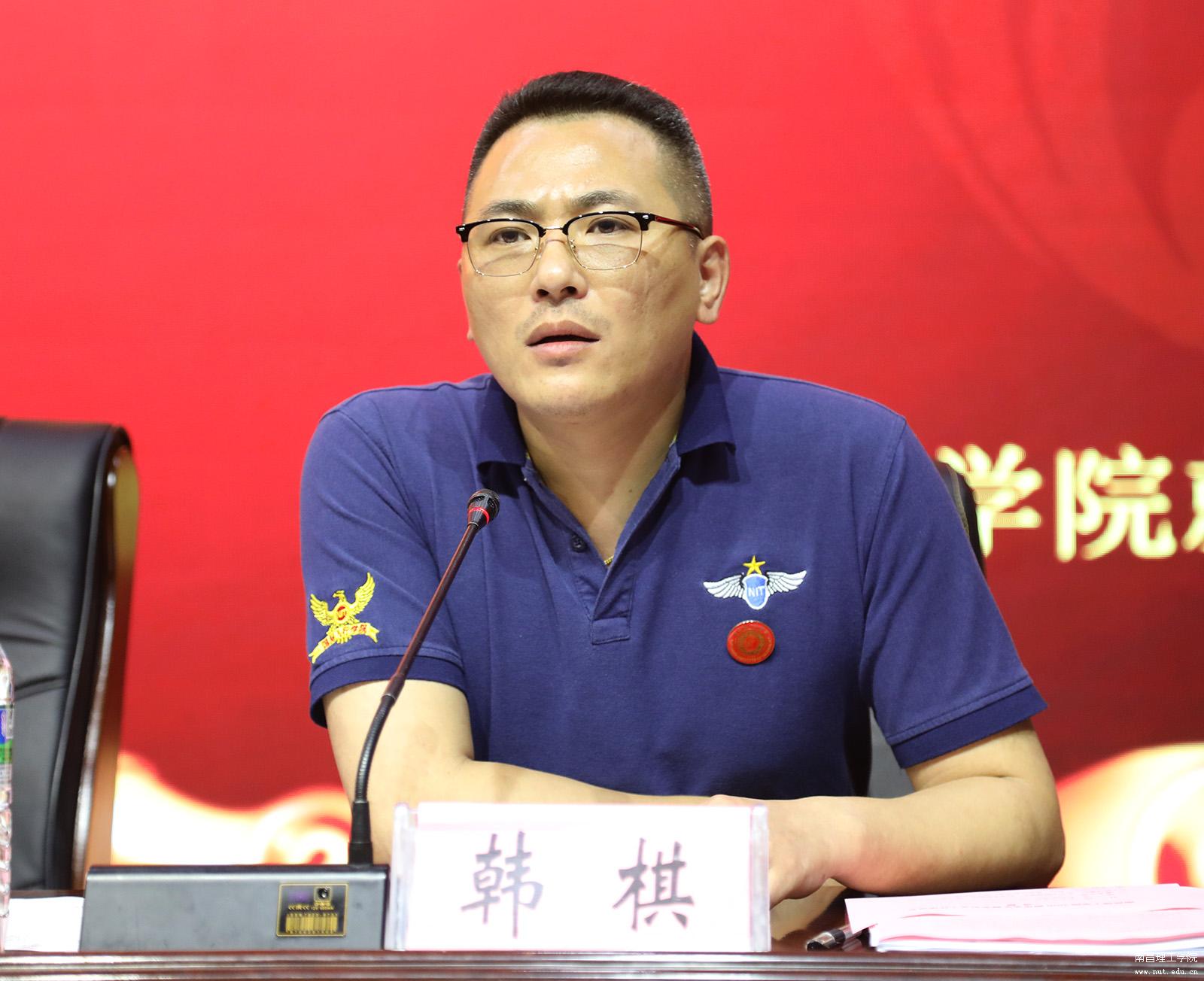 (学校就业指导工作处常务副处长韩棋向大会汇报了当前学校毕业生就业创业工作的进展情况)