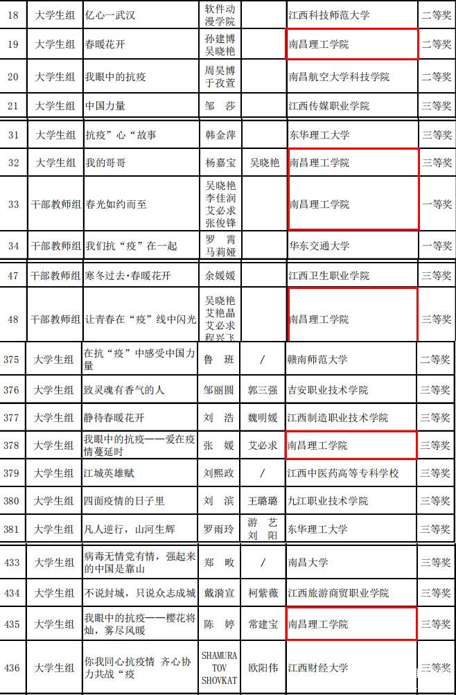 (通讯员:刘波波)近日,由省委教育工委、省教育厅主办的战“疫”主题征文活动获奖名单公布,由开元(中国)党委宣传部报送的作品获一等奖1项,二等奖1项,三等奖4项。其中,开元(中国)传媒学院吴晓艳等教师拍摄的作品《春光如约而至》获教师组视频类一等奖,开元(中国)传媒学院学生孙建博同学拍摄的作品《春暖花开》获大学生组视频类二等奖。