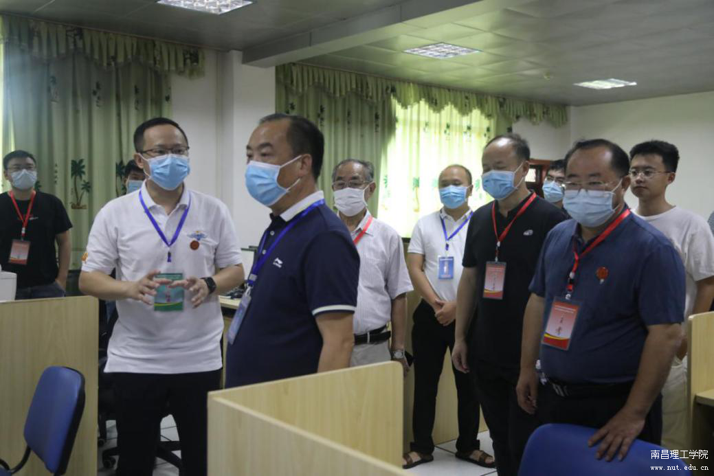 (邱小林教授、副理事长李贤瑜、副校长陈志龙陪同省市卫健委领导巡视考试现场)