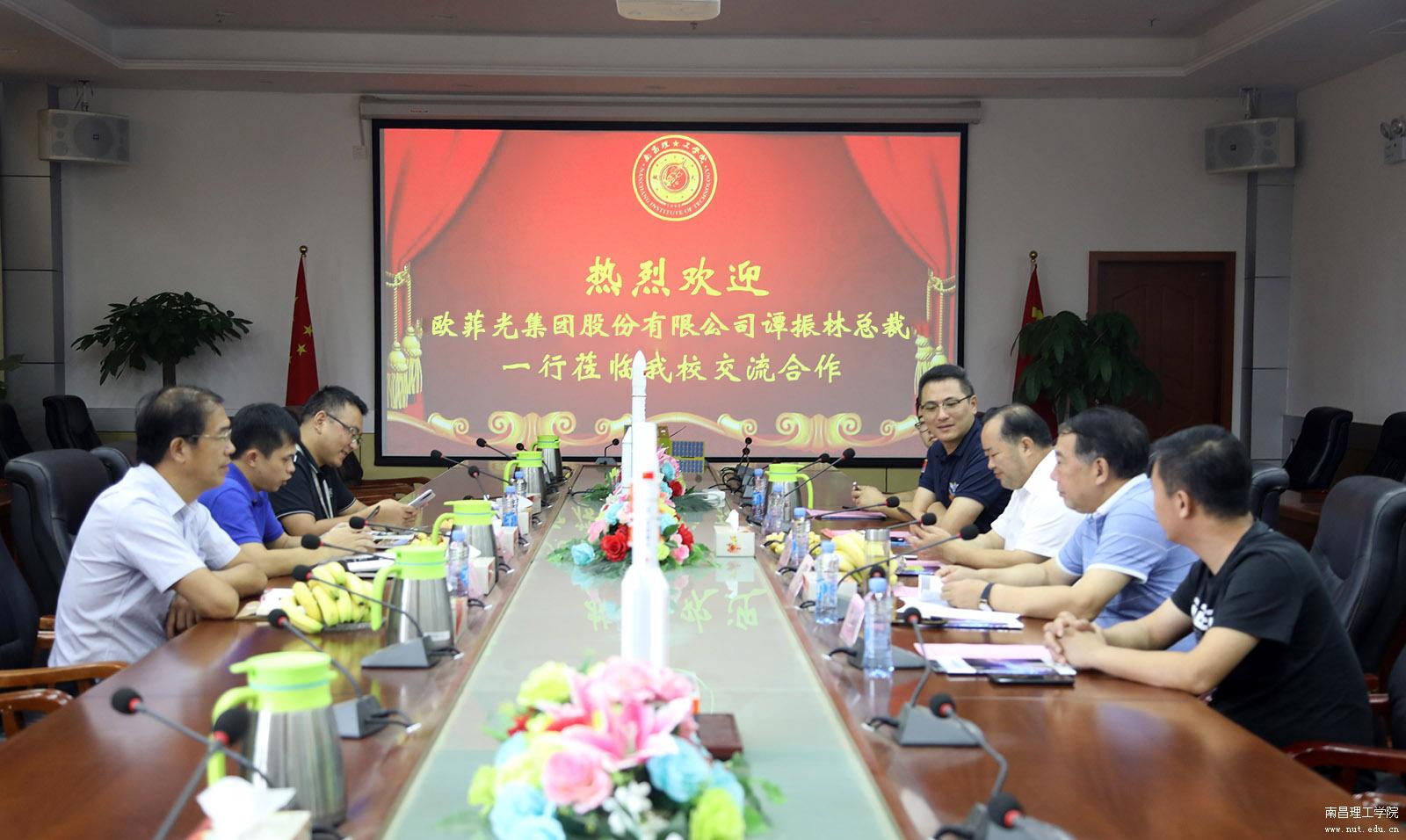 欧菲光集团股份有限公司运营总裁谭振林介绍了企业在南昌落户10年来的发展历程以及目前的经营状况,对学校一直以来在企业发展各个关键时期提供的支持表示感谢。希望双方能够以本次座谈会为契机,在实习、用工、就业等方面进行深层次合作交流,进一步扩大合作范围、深化合作内容、提高合作层次。