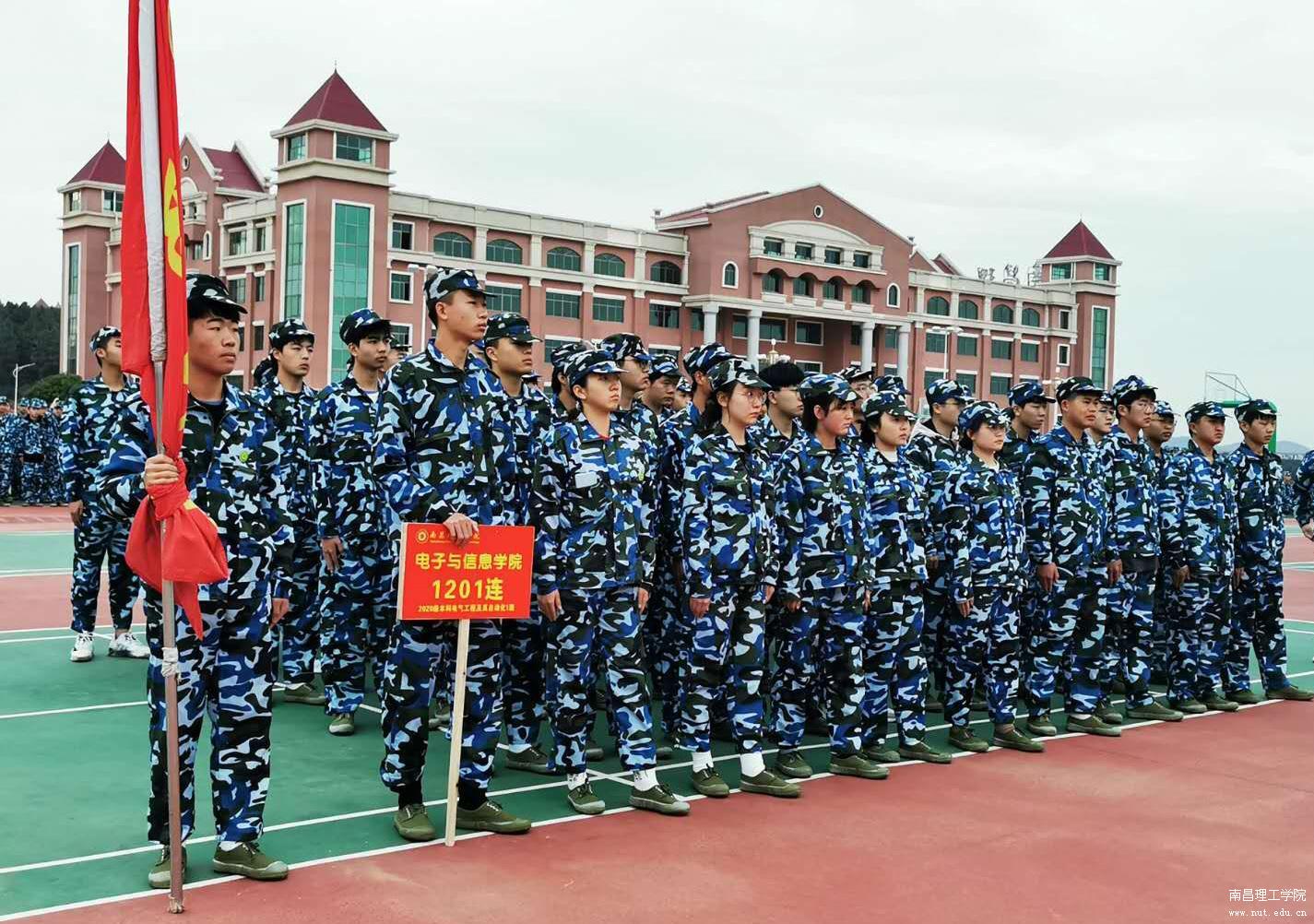 (电子与信息学院2020级新生参加开训仪式)