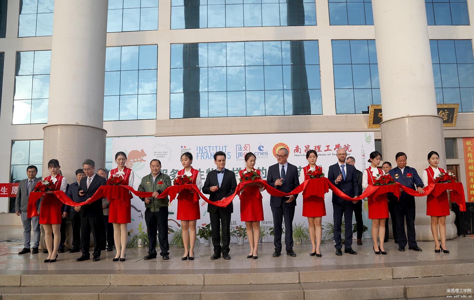 随后,出席活动的主要嘉宾代表共同为第七届中法环境月活动进行剪彩开幕。剪彩仪式后,法国国家空间研究中心北京办事处主任包若柏先生进行了详细的讲解式导览。