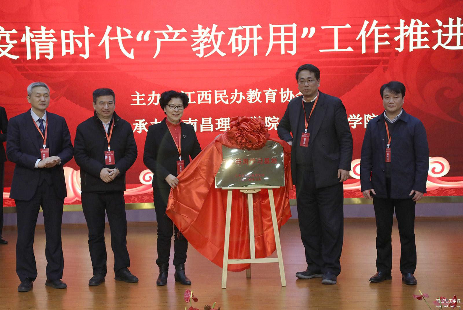 (黄小华、陈劲、于果、陈苏、邓慧杰、胡蓓共同为江西民办教育协会“产学沿用学习基地”揭牌)
