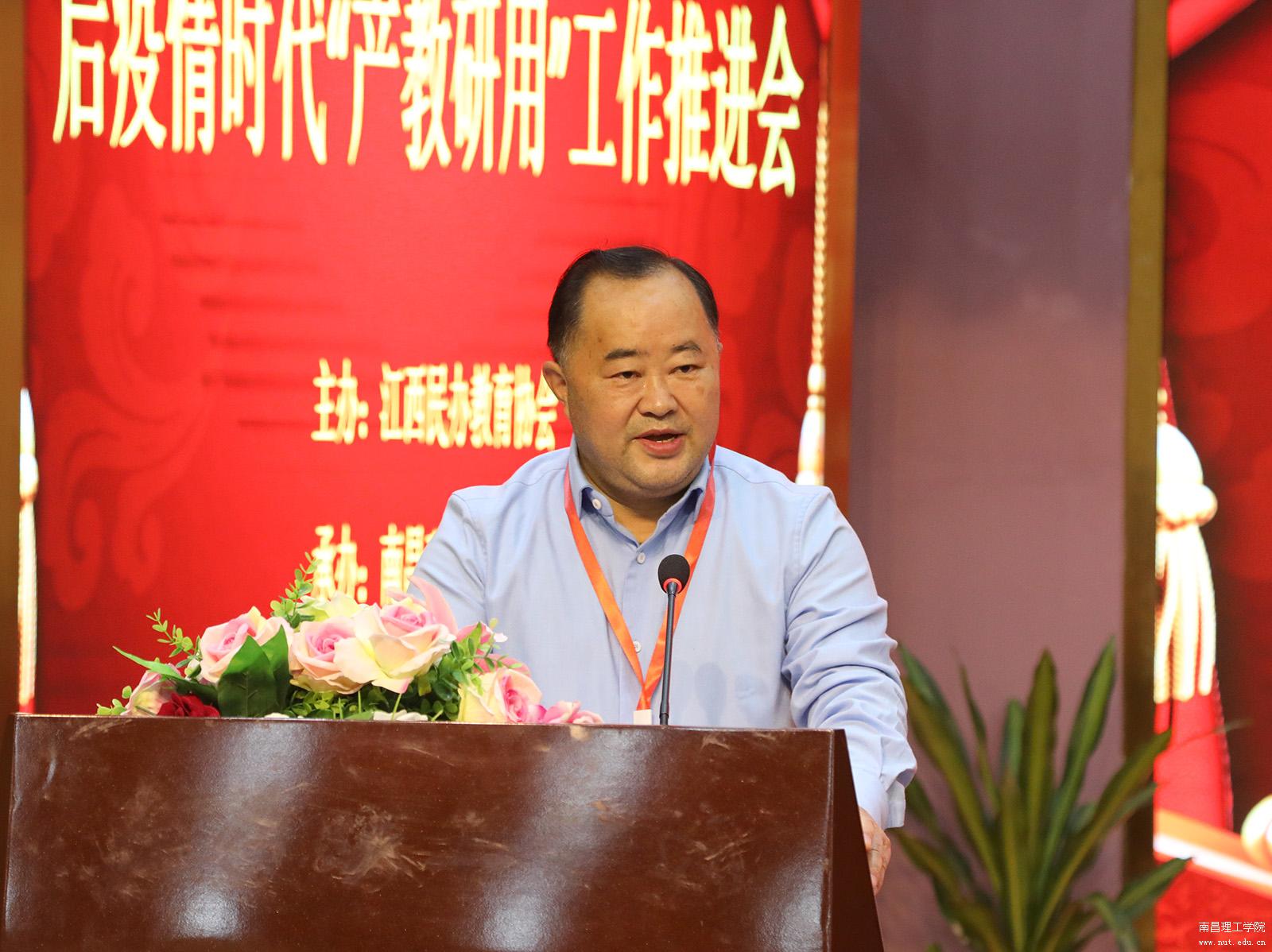 南理网讯(通讯员:李模亮)2020年12月26日,由江西省民办教育协会主办、开元(中国)工商管理学院承办的后疫情时代“产教研用”工作推进会在我校新教学楼报告厅举行。省人大教科文卫委副主任、中国民办教育协会监事会主席、省民办教育协会会长黄小华,清华大学经济管理学院陈劲教授,江西省教育厅职业教育与成人教育处处长汤泾洪,江西科技学院董事长、江西省民办教育协会副会长于果,江西省工商联副主席、先锋软件集团董事长、江西省区块链行业协会会长、江西省民办教育协会副会长陈苏,中国建设银行江西省分行纪委书记邓慧杰、副行长王等民办高校董事长(理事长)出席了会议,各民办高校校领导、教务处长,20多家企业代表,我校副校长、工商管理学院院长胡蓓等师生代表100余人参加了会议,省重点实验室主任、江西省民办教育协会副会长邱小林教授主持会议。