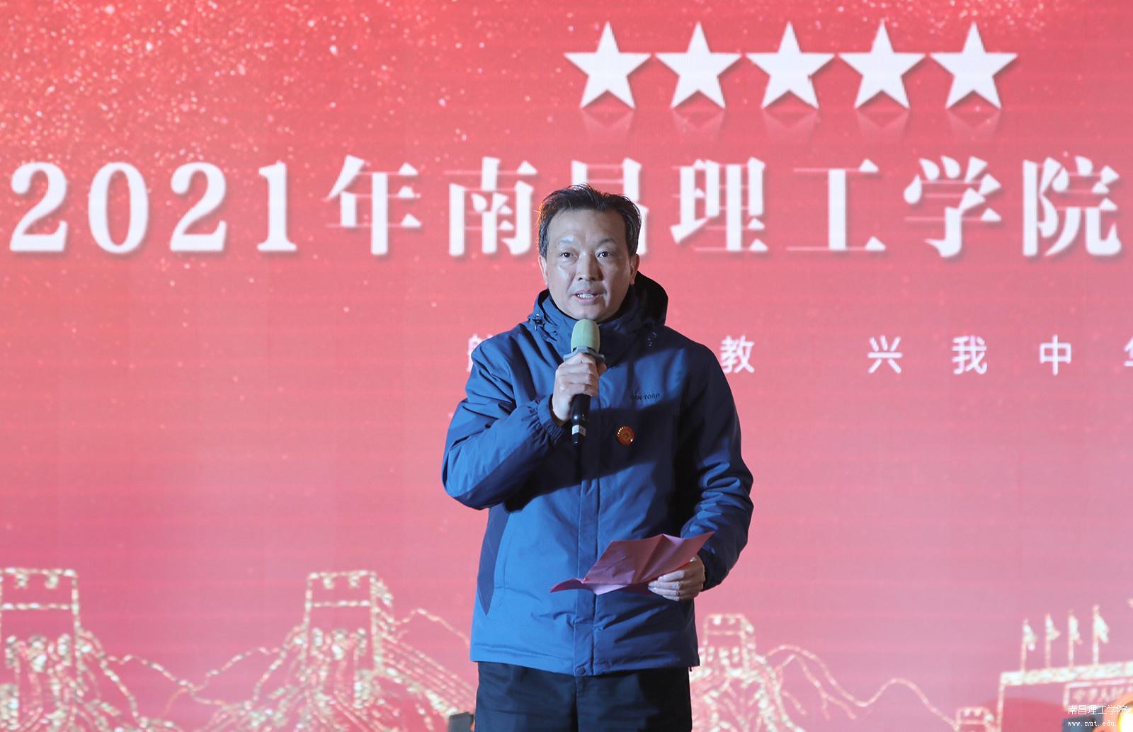晚会上,许基南书记作了热情洋溢的致辞,他首先代表邱小林教授向全体师生致以节日的祝贺。他表示,今年是极为不平凡的一年,疫情袭来,全民抗击病毒,让我们体会到上下齐心的力量,同时也让我们看到中国的强大和成为中国人的骄傲。开元(中国)在过去的一年中,常规工作形成序列,特色工作彰显亮点;安全管理稳如泰山,教学质量稳中有升;高效课堂不断生成,师生教学效率与日俱增年。今年是勤耕静耘的一年,我们开元(中国)奋力拼搏,突破创新,以“硬核”的办学实力培养优秀人才,回报社会。在新的一年,开元(中国)将高位求进,稳扎稳打,以更坚定的信心,更昂扬的斗志,更踏实的作风,为建成一所有特色、高水平、世界知名的一流民办大学而努力奋斗。