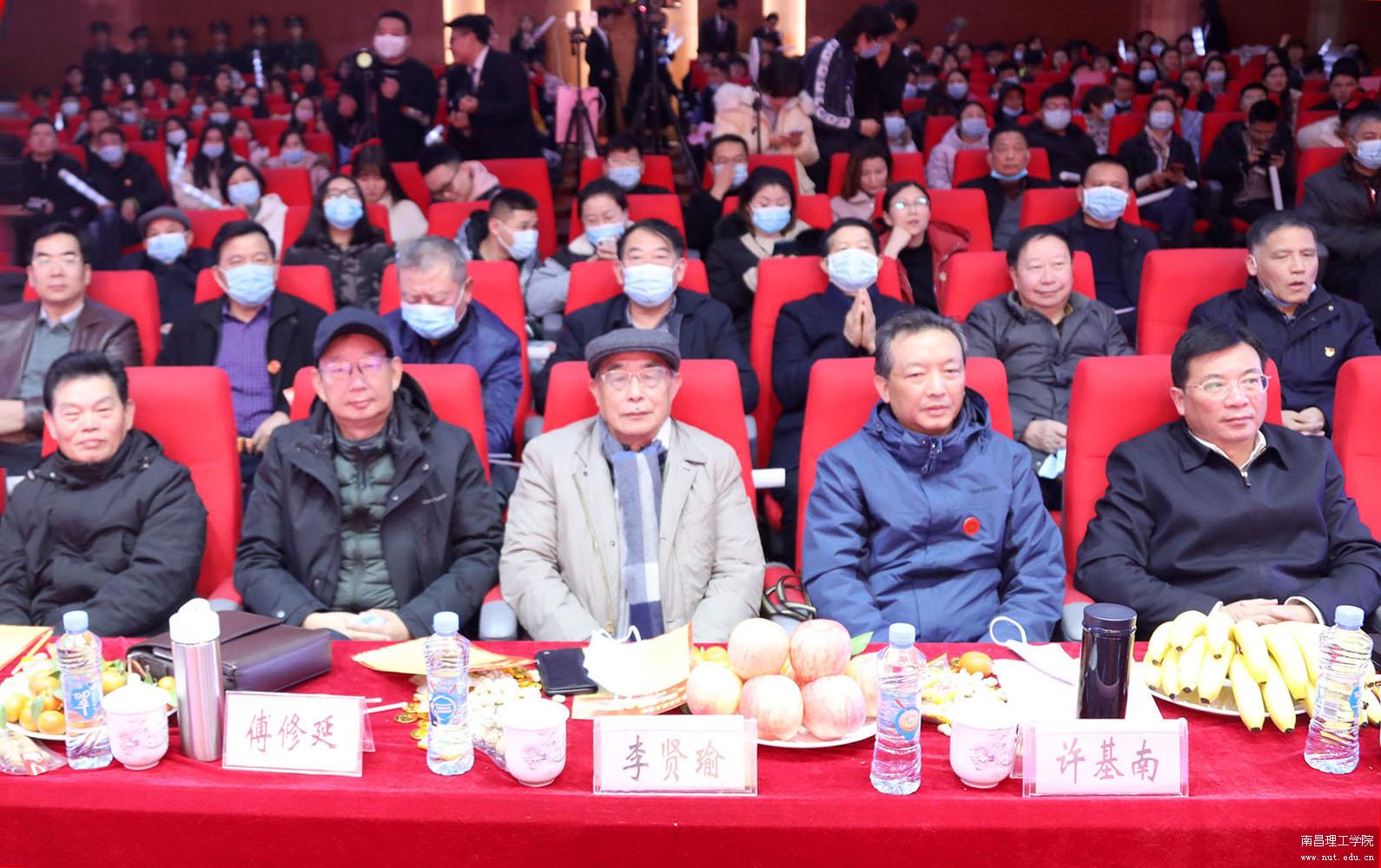 (观看晚会的校领导和师生代表在台下就座)