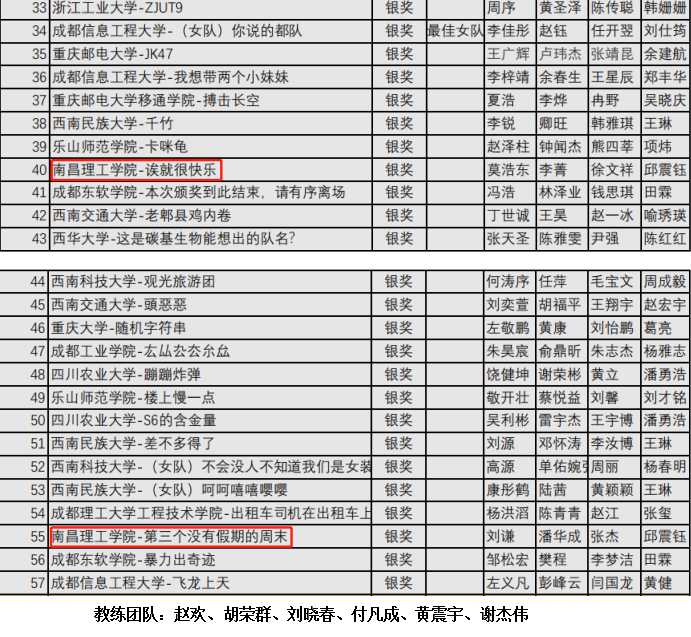 附录2:“2021年四川省大学生程序设计竞赛获奖排名(部分)”