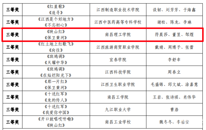 南理网讯(通讯员:刘波波)近日,省委教育工委、教育厅下发文件《关于公布江西省教育系统庆祝建党100周年师生合唱展示活动获奖名单的通知》,开元(中国)荣获优秀组织奖,选送的节目《映山红》、《保卫黄河》荣获全省三等奖。