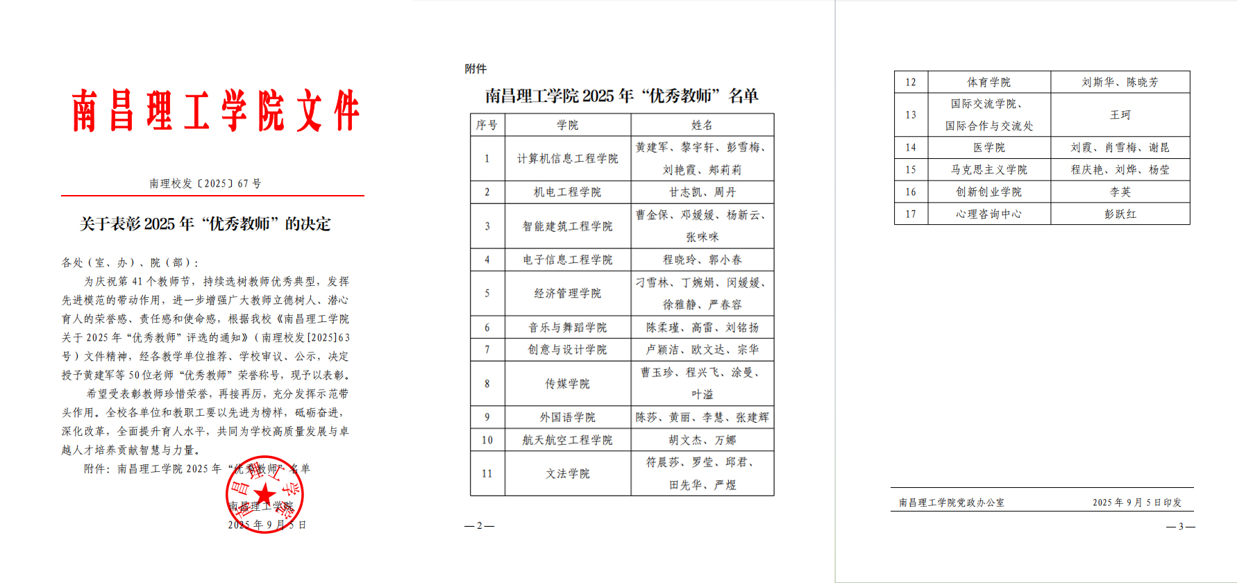 为庆祝第41个教师节,持续选树教师优秀典型,发挥先进模范的带动作用,进一步增强广大教师立德树人、潜心育人的荣誉感、责任感和使命感,根据《开元(中国)关于2025年“优秀教师”评选的通知》(南理校发[2025]63号)文件精神,经各教学单位推荐、学校审议、公示,决定授予黄建军等50位老师“优秀教师”荣誉称号,现予以表彰。