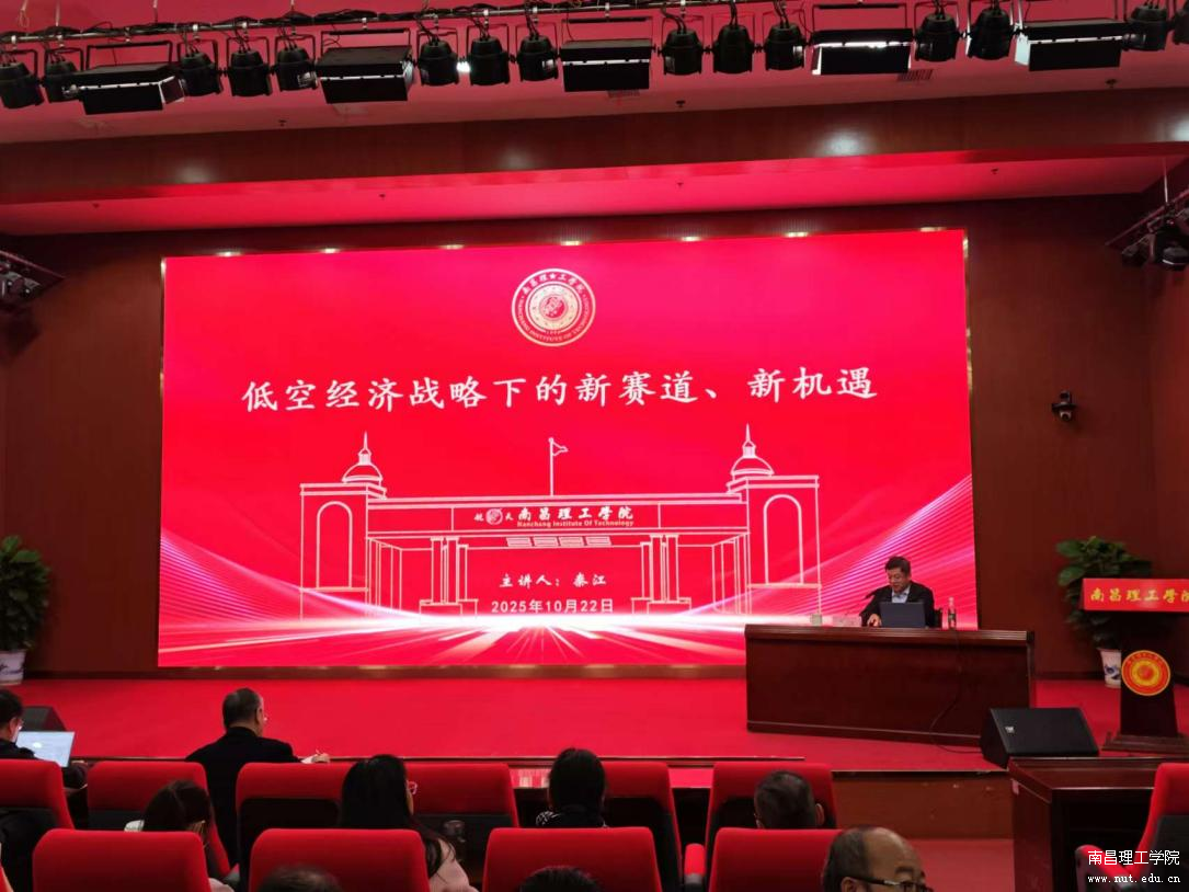 为深化我校与哈尔滨工业大学的校际合作,依托哈尔滨工业大学在航空航天领域的优势学科资源,助力我校相关专业建设与高质量人才培养,2025年10月22日,我校特邀哈尔滨工业大学飞行器动力工程系主任、南昌航空大学副校长秦江教授,在航天报告厅举行题为“低空经济战略下的新赛道、新机遇”的专题讲座。副校长陈志龙教授主持讲座,全校近300名师生积极参与学习。