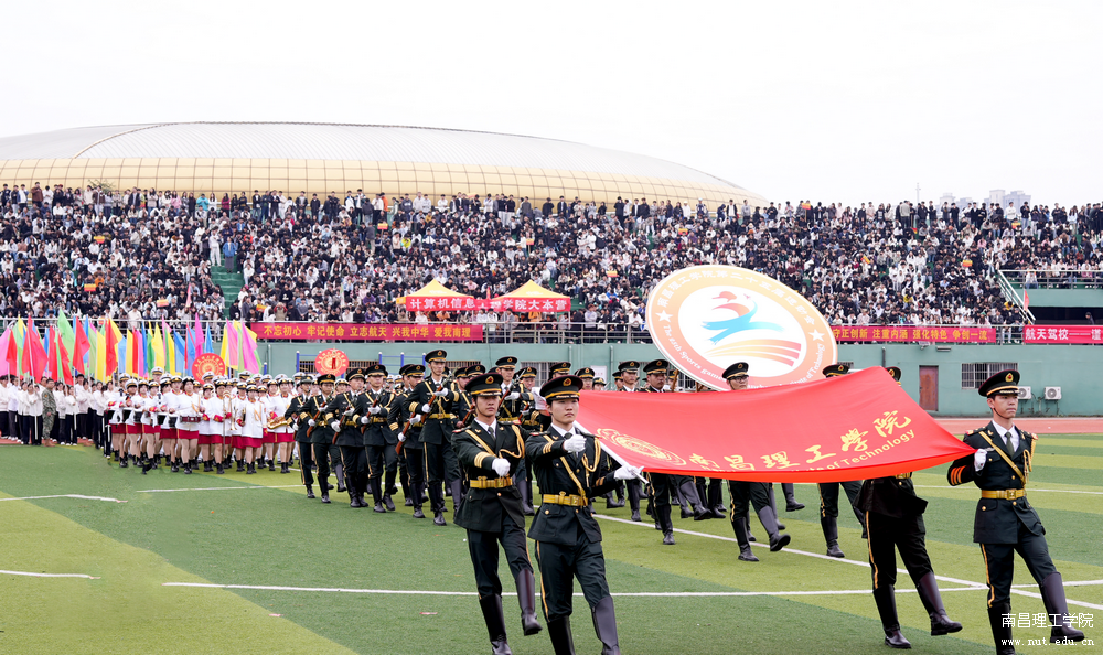 开幕式伊始,鲜艳的五星红旗、校旗、本届运动会会旗在校国旗护卫队护送下庄严入场。各二级学院运动员方阵和裁判员方阵踏着矫健的步伐依次入场,他们着装整齐、精神饱满,他们意气风发、青春飞扬,他们斗志昂扬、团结友爱,充分展现了南理师生积极向上、奋发有为的精神面貌。