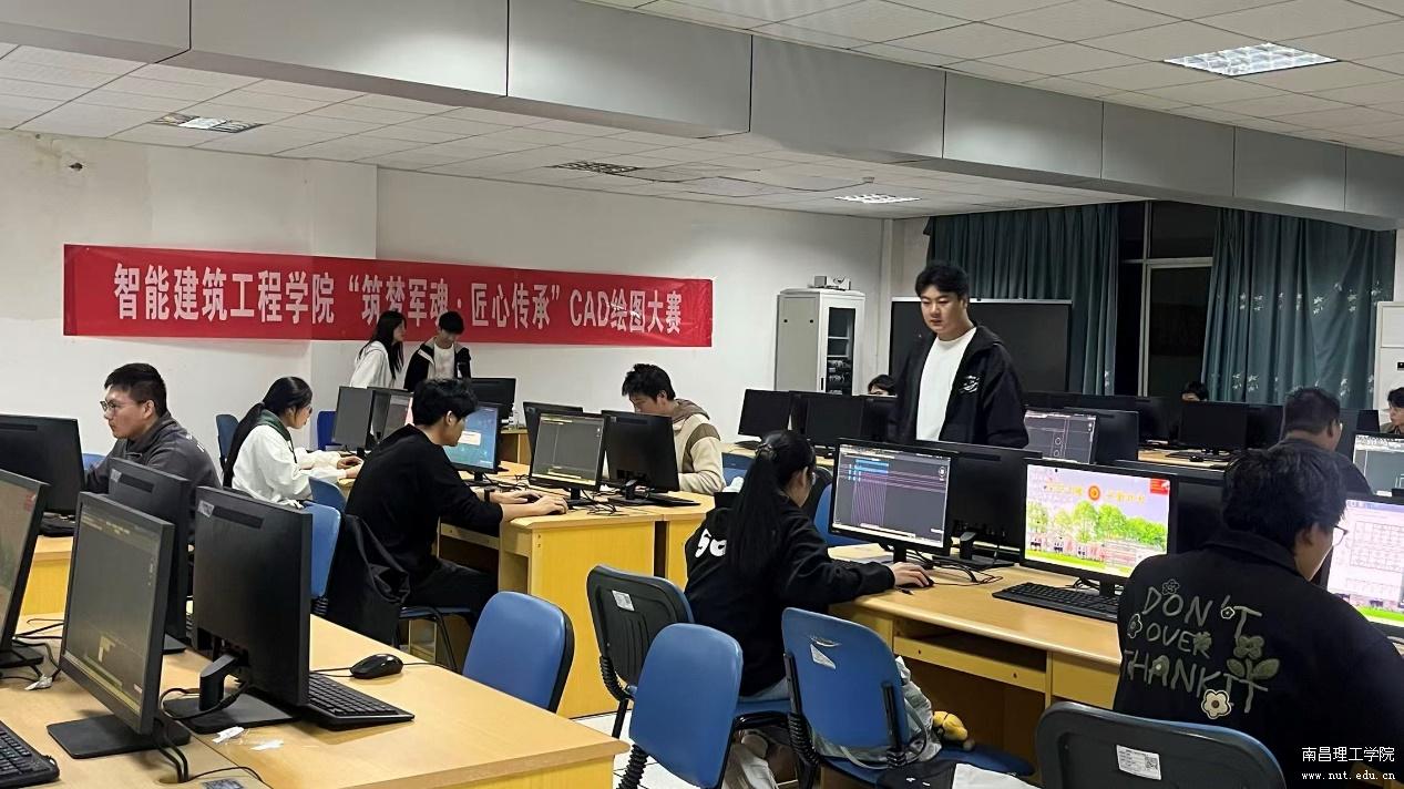 下午五点,比赛在实验楼507、509、510机房同步拉开帷幕。在持续两小时的赛程中,现场气氛紧张而热烈。键盘敲击声与鼠标点击声此起彼伏,参赛选手全神贯注、沉着应对,灵活运用各类软件指令,将精准的建筑构思转化为规范的电子图纸,充分展现出扎实的专业功底与精益求精的工匠精神。