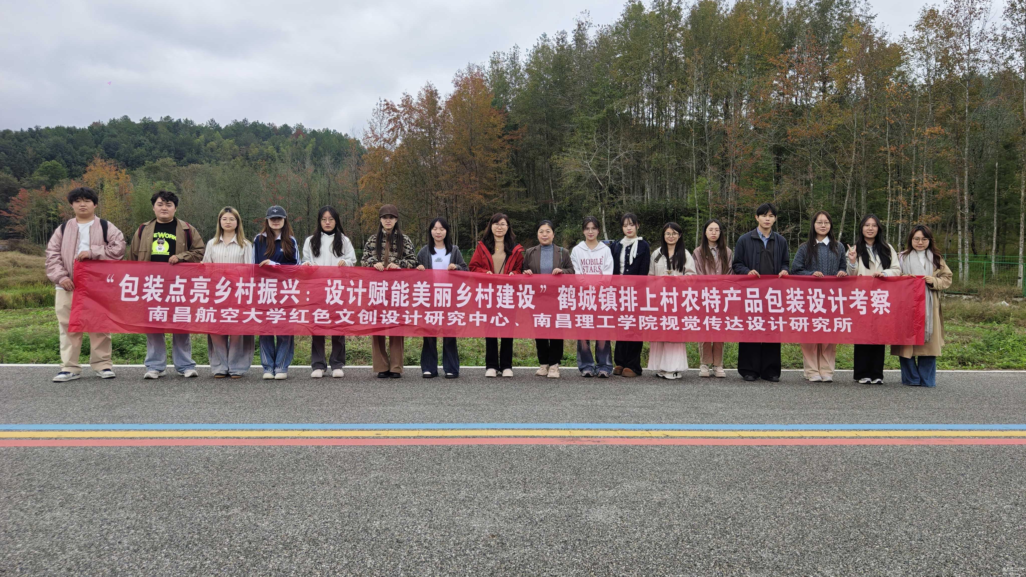2025年11月10日,我校视觉传达设计专业师生携手南昌航空大学《包装设计》课程团队,赴江西省资溪县鹤城镇排上村开展以“包装点亮乡村振兴,设计赋能美丽乡村建设”为主题的农特产品包装设计实地考察活动。此次活动是我校与南昌航空大学在省级视觉传达设计专业课程集群教学虚拟教研室框架下,深化课程改革、推进项目式教学的重要实践,也是两校首次将包装设计课堂搬进田间地头的创新尝试。