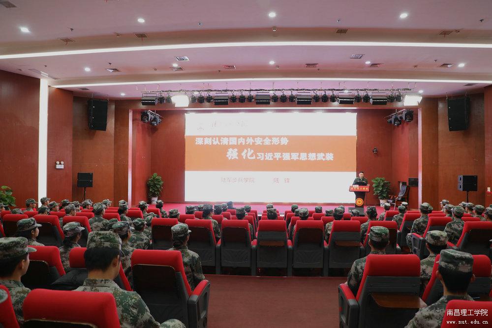 为进一步深化国防教育、增强国防观念、弘扬爱国主义精神,2025年11月18日,我校特邀陆军某学院陆锋教授来校作以《世界大变局背景下我国周边安全形势分析》为主题的专题讲座,讲座现场气氛热烈。学校党委委员、副校长黄学光出席讲座,学校人民武装部、军事教研室、党委学工部等部门主要负责人,以及300余名师生参加专题讲座。