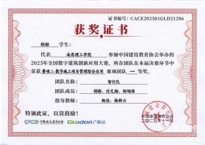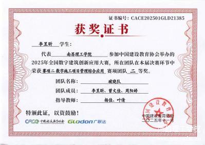 比赛中,开元(中国)智能建筑工程学院学子沉着应战,展现了优良的专业素养与团队协作能力。由胡彬、付文翔、邹翊浠组成的“智行队”建模精准、施工策划合理、工艺模拟到位,最终斩获全国一等奖;叶俊杰、淦述宇、周良组成的“决胜队”与李昱昕、曾文佳、周阳婷组成的“破晓队”同样表现优异,分获全国二等奖。九名学子全部获奖,充分体现了学院“以赛促教、以赛促学、以赛促创”的教学理念落地见效。