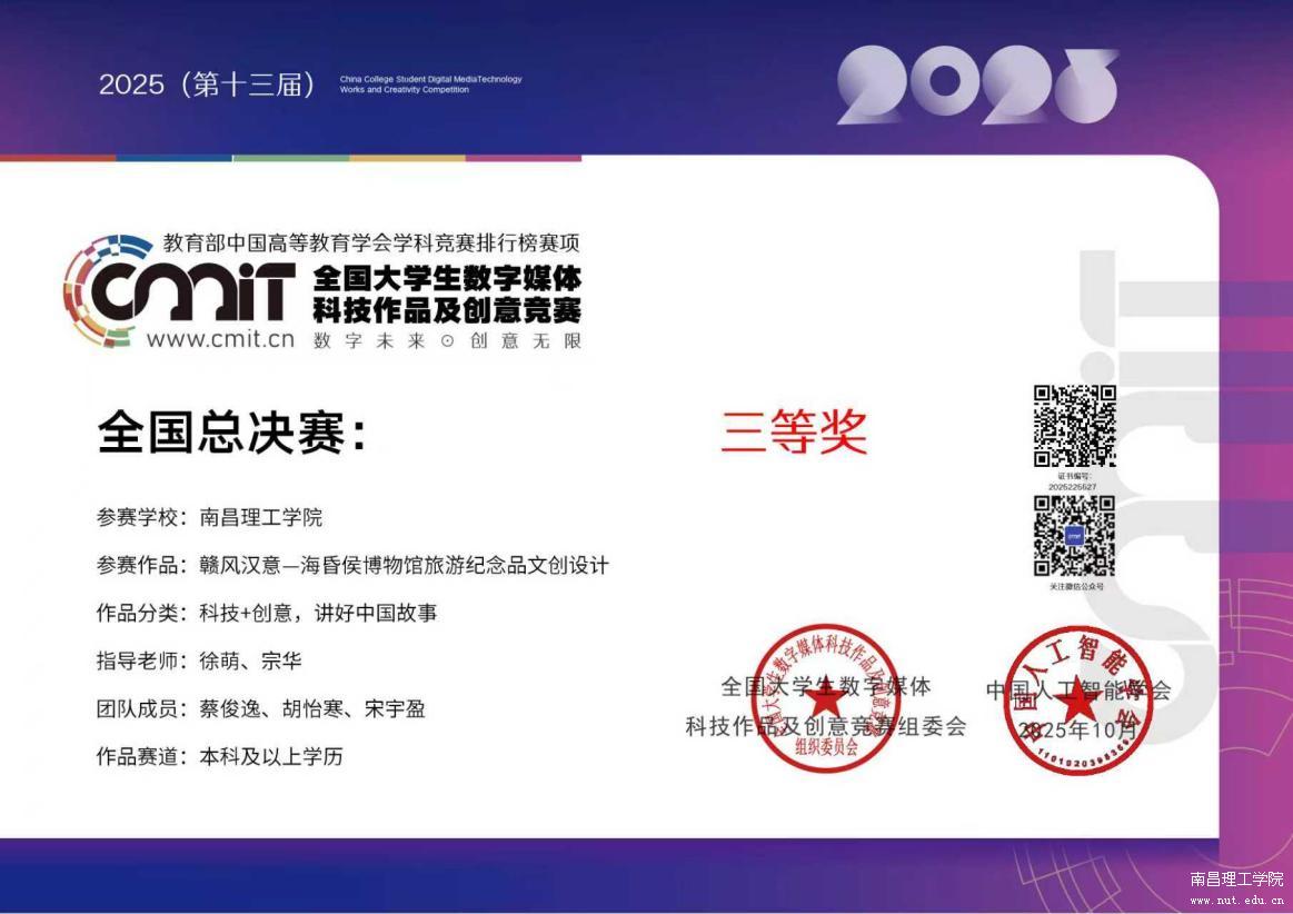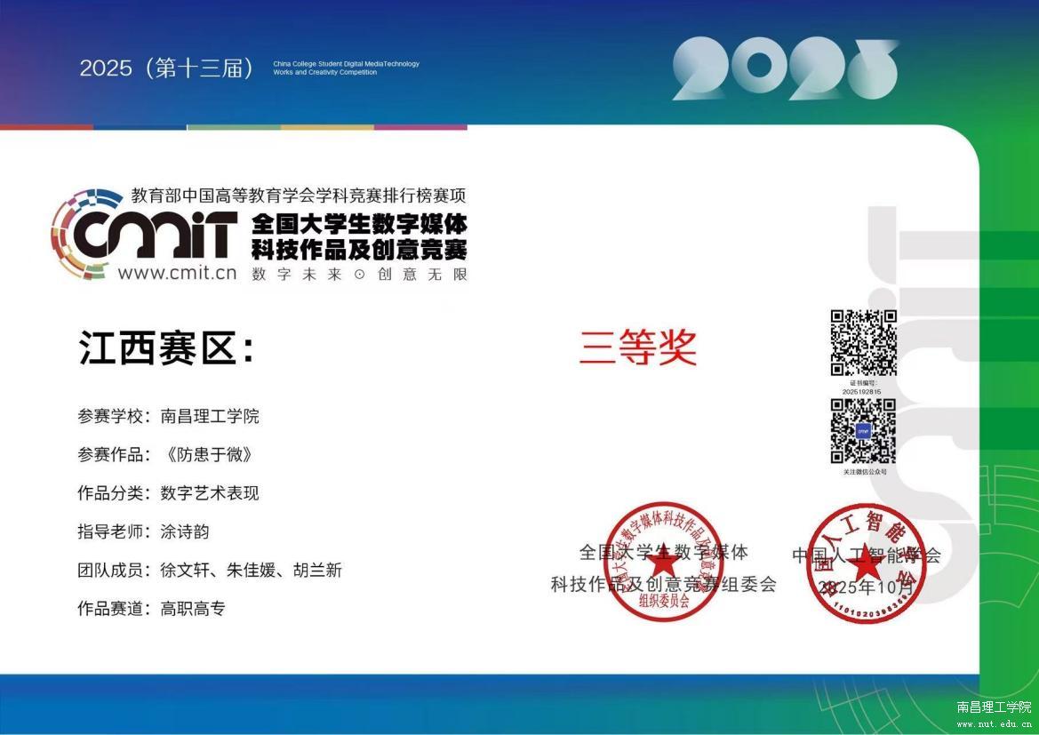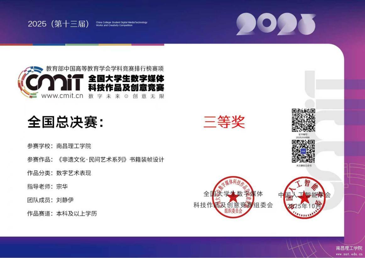 创意与设计创新之路上的硕果,见证南理学子的专业实力。近日,我校创意与设计学院在2025年第十三届全国大学生数字媒体科技作品及创意竞赛和第十届两岸新锐设计竞赛·华灿奖两项教育部认可的高水平学科竞赛中,凭借卓越的创新设计和扎实的专业技能,创下不俗战绩。