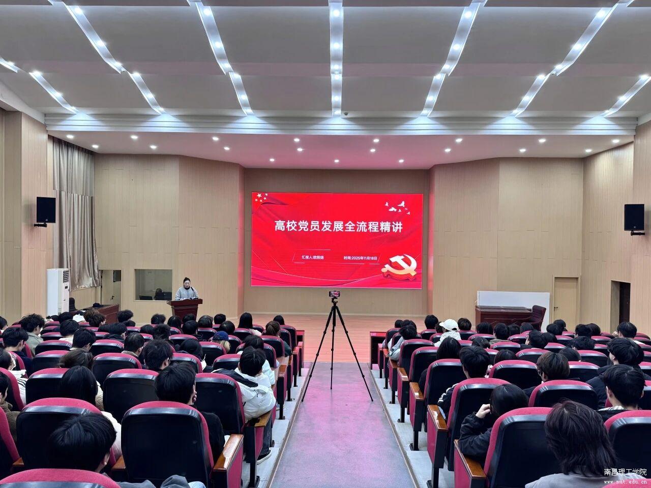 党政办主任欧阳娟就“发展党员流程”进行系统讲解,详细说明申请入党、确定入党积极分子、接受预备党员、预备党员转正等各环节的具体要求。她指出,发展党员工作必须严格遵循“控制总量、优化结构、提高质量、发挥作用”的总要求,始终把政治标准放在首位。同时,党组织要及时向发展对象和预备党员反馈意见,帮助其明确改进方向;团员青年也要主动反思、积极提升,在组织培养中实现思想与能力的双重进步。