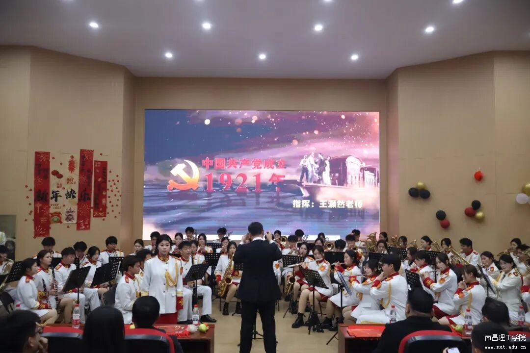 在“赤心咏歌”篇章,《不忘初心》经典曲目深情奏响。悠扬的旋律交织着坚定的信仰,生动诠释出军民同心向党、矢志不渝的赤诚情怀。其中,《黄水谣》曲目吹奏由王灏然老师指导,合唱由音乐与舞蹈学院合唱团54名同学参演、刘子铉老师指导,将晚会推向高潮,赢得师生热烈掌声。